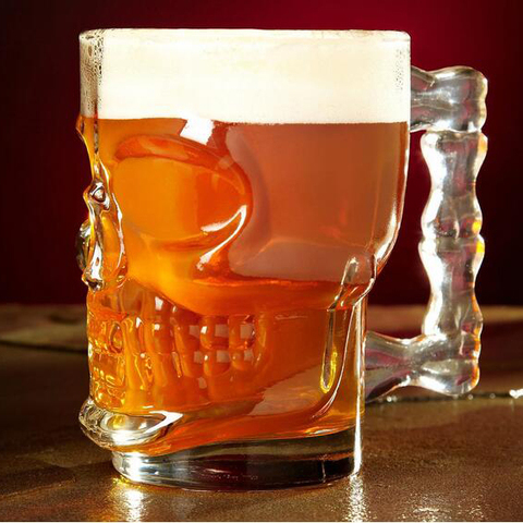 18OZ độc đáo pha lê sọ bia thủy tinh Cốc nặng cơ sở vui thủy tinh sọ mặt bia cốc uống kính có tay cầm